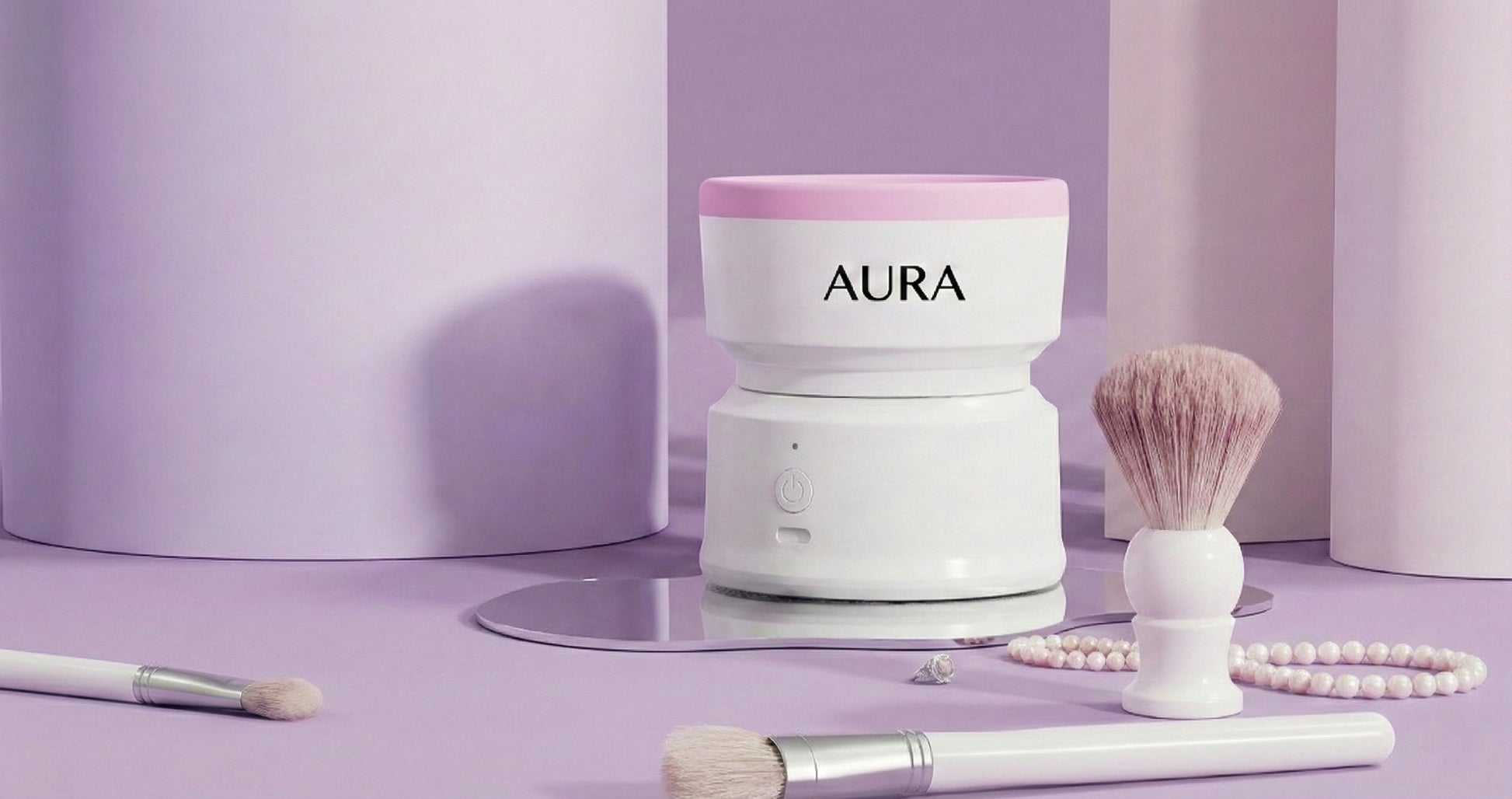 The Aura Rotary Brush Cleaner is fully portable and USB rechargeable. A single charge provides enough power for multiple cleaning sessions, making it perfect for your vanity or for travel without worrying about replacing batteries.